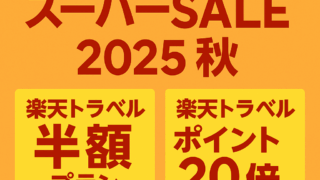 未分類 楽天トラベル スーパーセール 2025 秋の活用術!ポイント20倍・クーポン併用術も紹介 楽天トラベルスーパーセール2025秋の開催情報と活用術を徹底解説!半額プラン、ポイント20倍、クーポンの併用方法も紹介します。 2025.09.05 未分類
